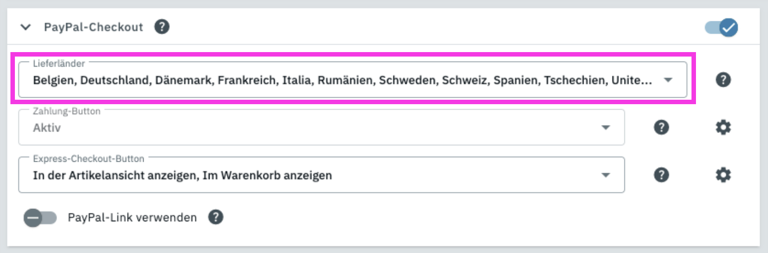 Überprüfe im Feld PayPal-Checkout die Lieferländer.
