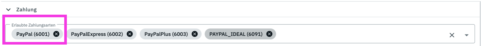 Überprüfe die Liste unter Gesperrte Zahlungsarten und entferne ggf. den Haken.