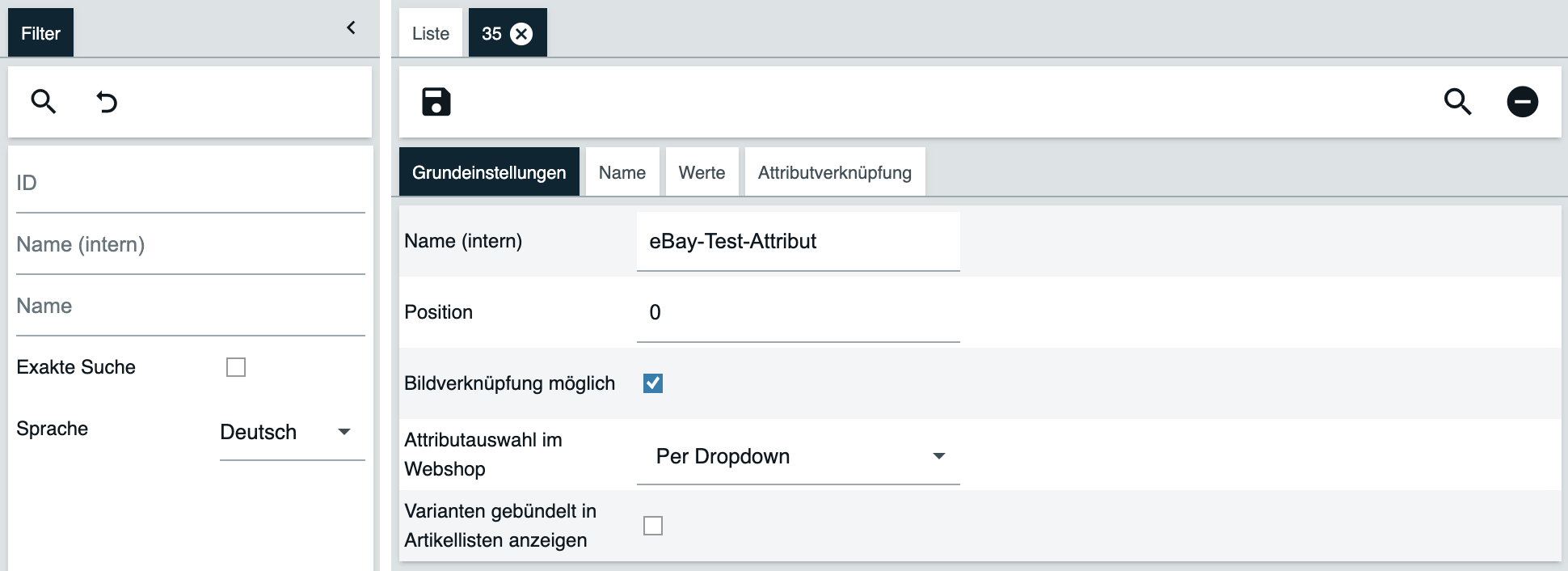 - Aktiviere unter Einrichtung » Artikel » Attribute für das Attribut, mit dem das Bild verknüpft werden soll, die Option Bildverknüpfung möglich.