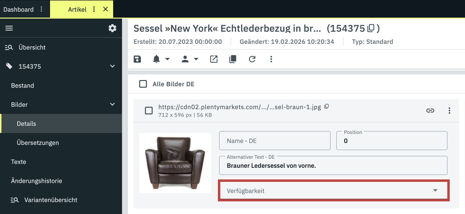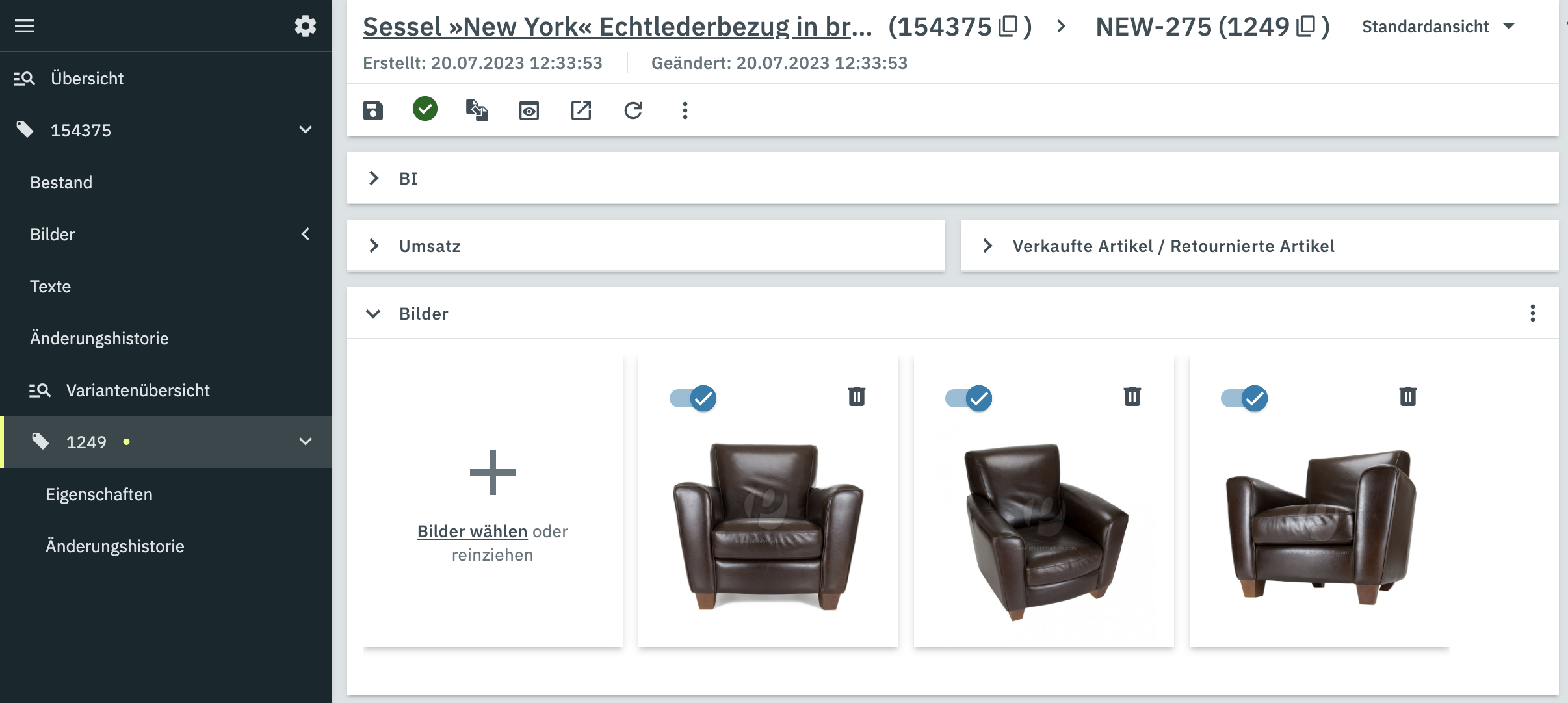 - Wechsle zurück in den Artikel und lade diesen neu. Öffne anschließend eine Variante und navigiere zum Bereich Bilder.