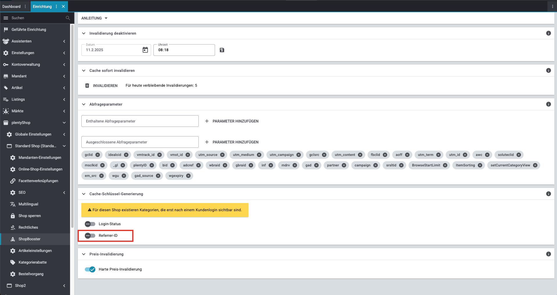 ShopBooster bietet die Möglichkeit bestimmte Kriterien von der Cache-Key-Generierung auszuschließen. Indem du Kriterien ausschließt, kannst du die Cache-Abdeckung insgesamt verbessern. Achte darauf, dass deine Kriterien nicht auf Kategorien zutreffen, die erst nach Kundenlogin sichtbar sind.