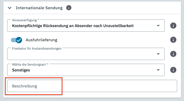 Das Problem tritt auf, weil die Sendungsart Sonstiges in SOAP Version (im Assistenten) keine individuelle Beschreibung hatte: