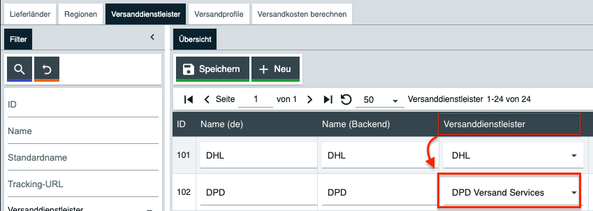 Beachte, dass DPD Retouren nur über DPD Versand-Services angemeldet werden können, wenn auch der Hauptauftrag der Retoure mit demselben Versandprofil für DPD Versand-Services verknüpft ist.