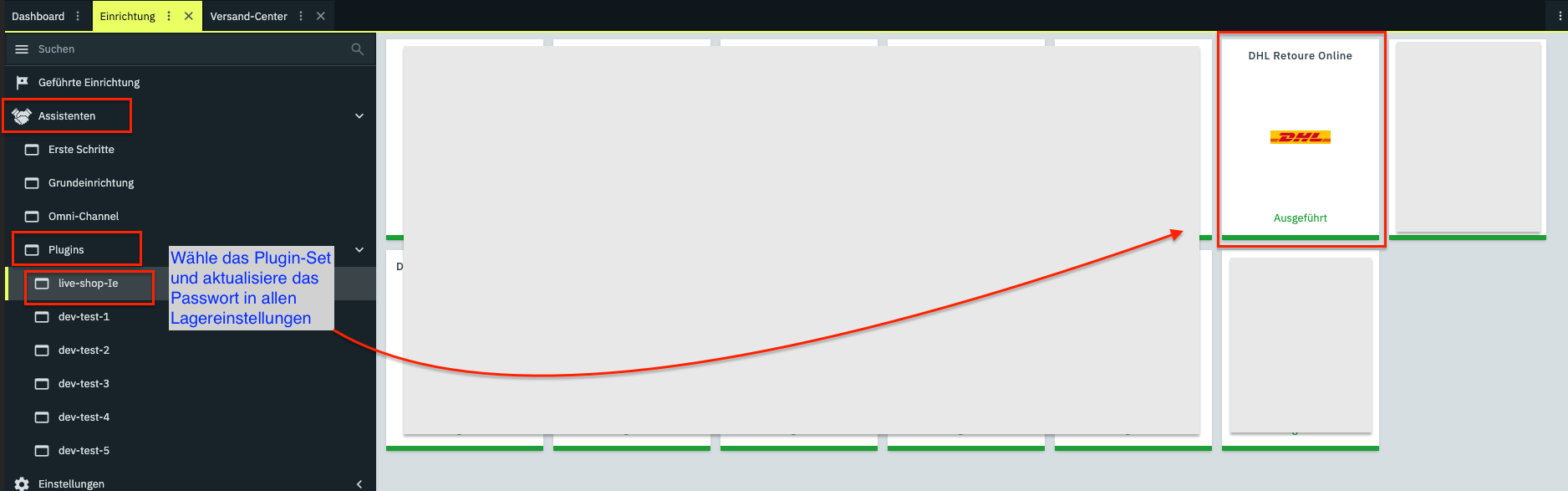Wenn das DHL Passwort im GKP aktualisiert wird, muss es bei allen Schnittstellen entsprechend manuell angepasst werden.