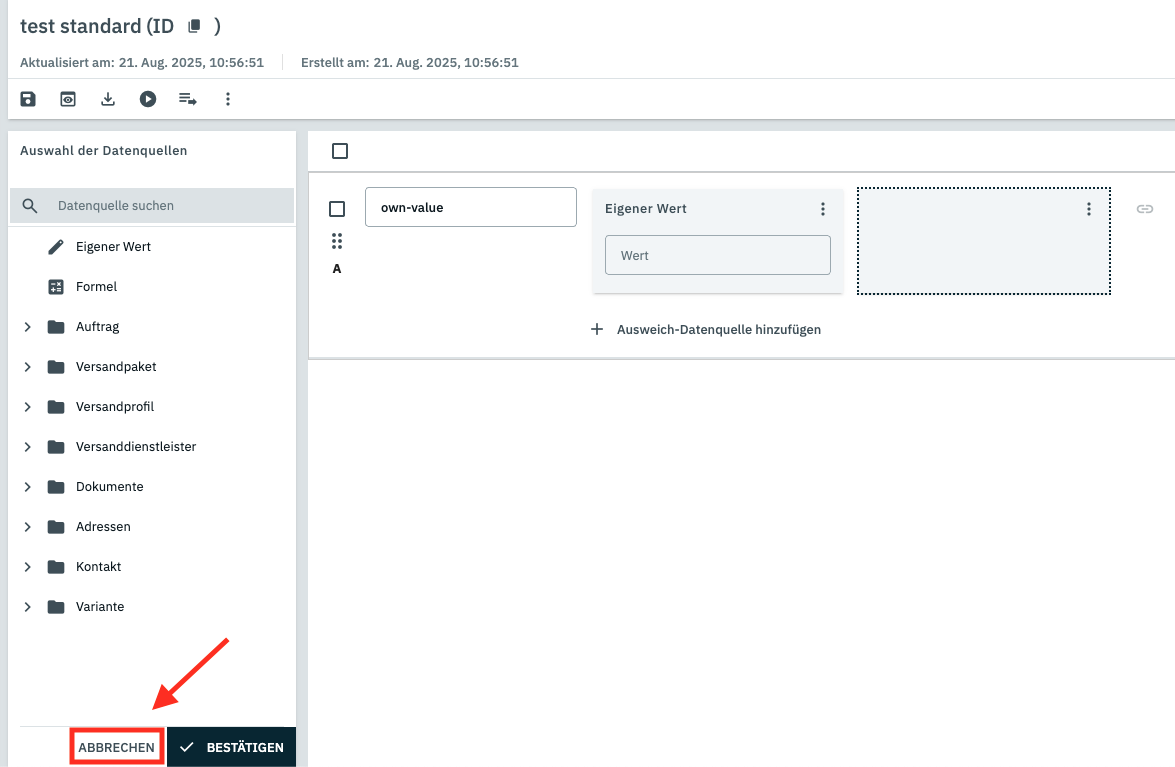Beim Hinzufügen von Datenquellen zu Katalogen, die das Standardformat verwenden, wurde bisher im unteren Bereich der Liste der verfügbaren Datenquellen immer eine Abbrechen-Schaltfläche angezeigt.