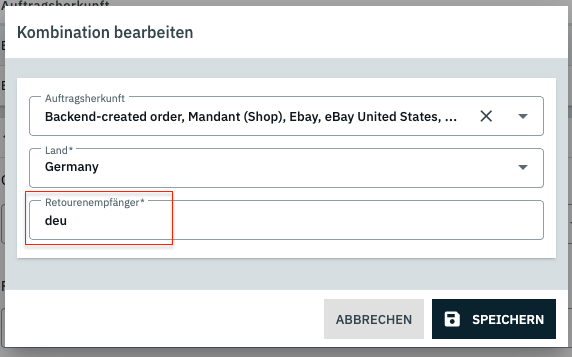 Vorgehensweise zur Korrektur der Receiver-ID (Retourenempfänger):