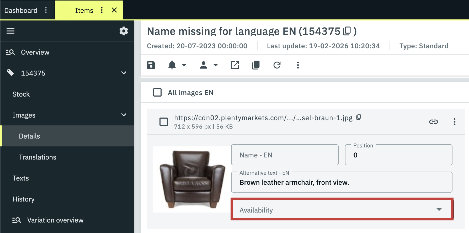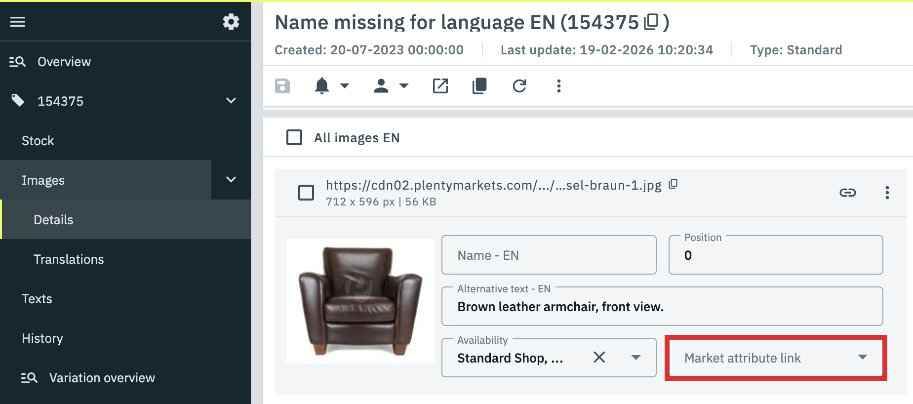 You can only link an image to one value of an attribute. - Images that are linked to a variation in PlentyONE but do not have a market attribute link cannot be exported.