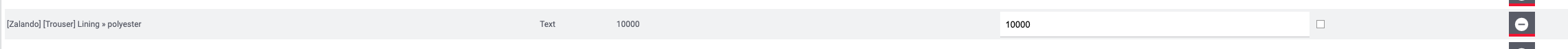 Within the attributes, you enter the material information for the article. In the attribute of type text, you specify what percentage of the article consists of the chosen material.